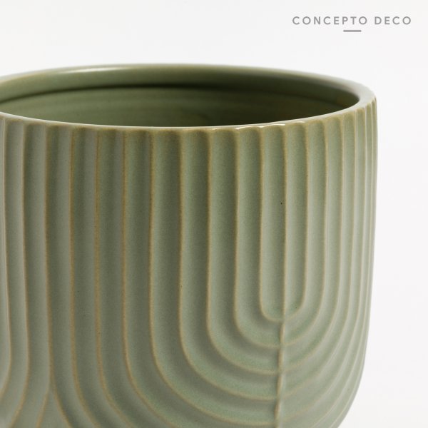 PORTA MACETA RAYAS CERAMICA VERDE 16X16CM
