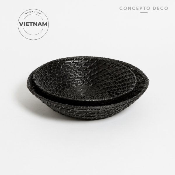 SETX2 BANDEJA RATTAN NEGRO G:34,5X8CM C:29X9CM