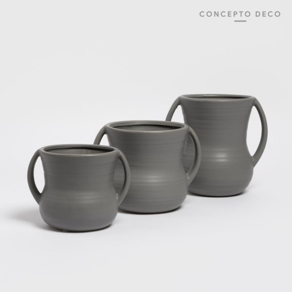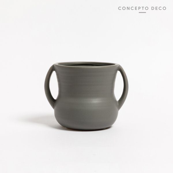 FLORERO VASIJA CERAMICA GRIS 13X12CM