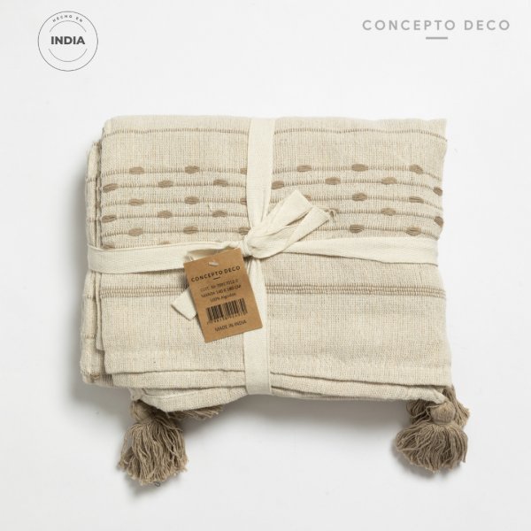 MANTA DE SOFÁ INDIA NAINI CRUDO Y BEIGE 140X180CM