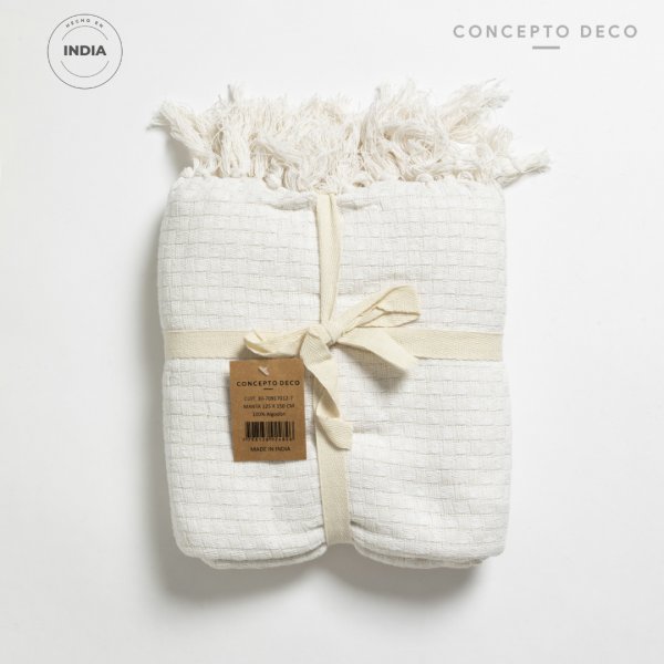 MANTA SOFÁ INDIA KOLARA WAFFLE ALG BLANCO 125X150CM