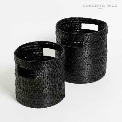 SETX2 CANASTO RATTAN NEGRO G:25X25,5CM C:21,5X22CM